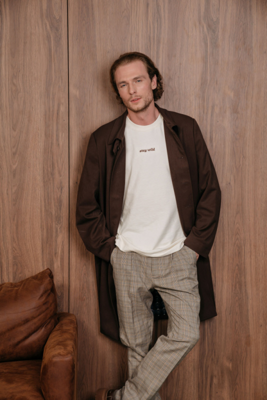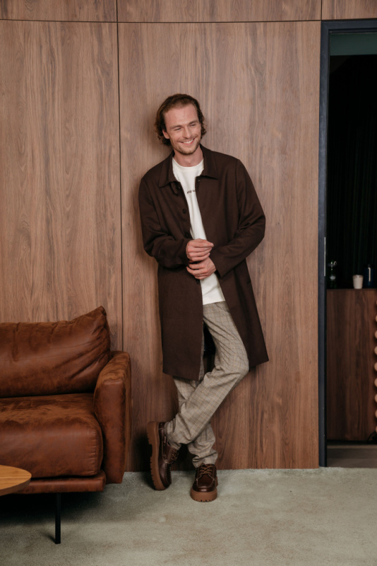 Пальто мужское, прямого свободного фасона, с однобортной скрытой застежкой и отложным воротником, длиной до колена. Внутри - вставка с воротником-стойкой и застежкой на молнию. Модель однотонного цвета из хлопка. Сочетать такое демисезонное пальто можно как с классическими ансамблями для офиса, так и носить с менее формальными сетами в городских буднях.