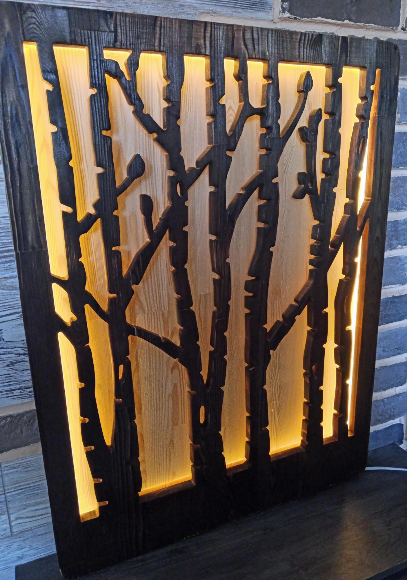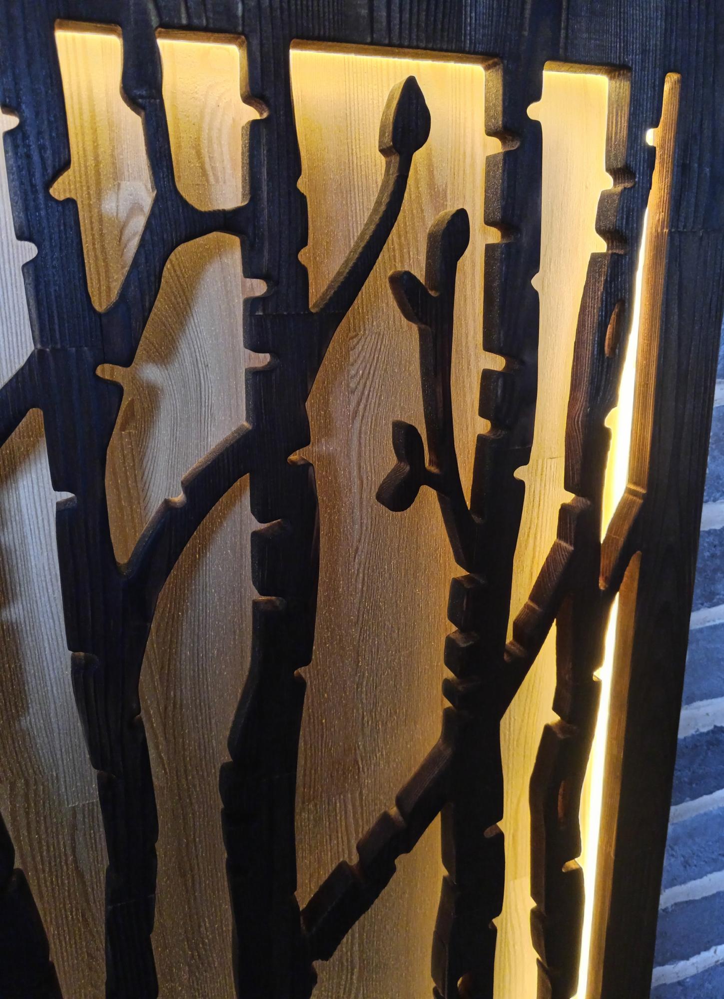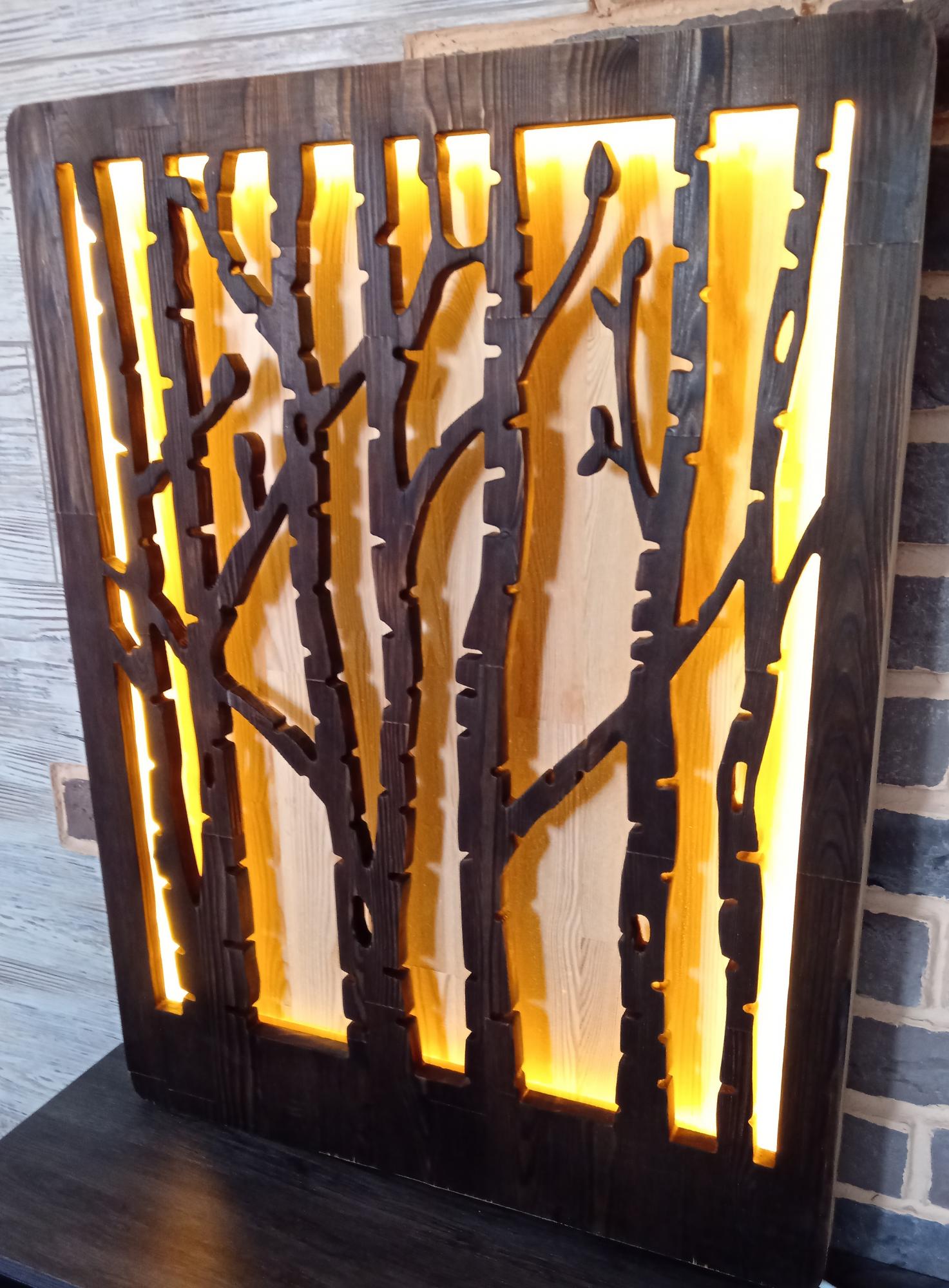 Панно с сенсорной подсветкой из фанеры от бренда Каен Бай — современное решение для оформления интерьера, которое сочетает эстетику натурального дерева и инновационные технологии освещения. Такие изделия позволяют создать уникальный дизайн помещения благодаря возможности управления светом простым касанием поверхности панно.