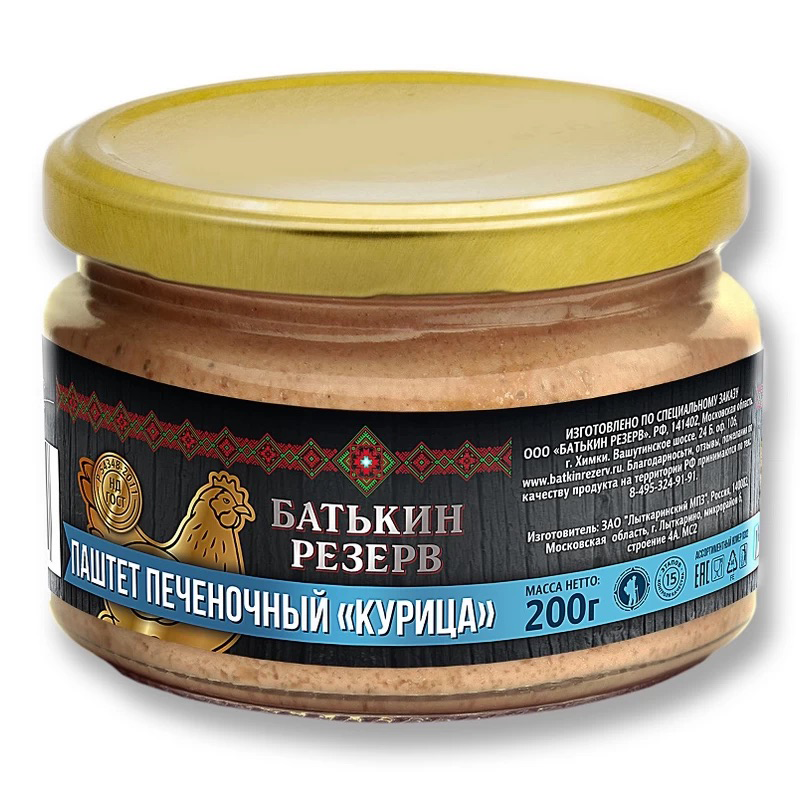 Состав: печень домашней птицы, вода, жир домашней птицы, свинина, лук, соль пищевая, сахар, перец душистый молотый, орех мускатный, корица, гвоздика, ароматизатор (мясо куриное).