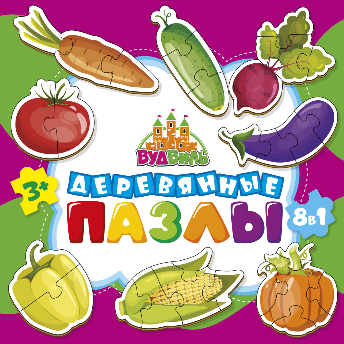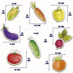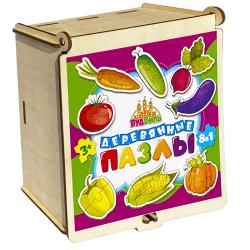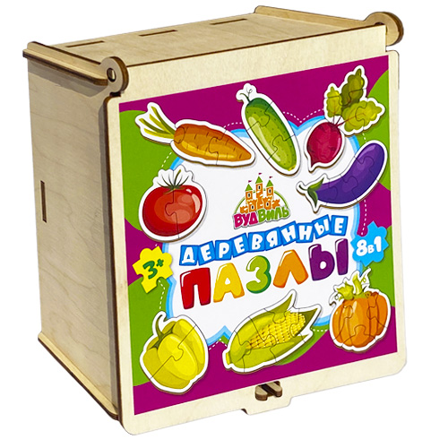 Набор пазлов из дерева для малышей 8 штук "Овощи", деревянные пазлы в красивом и практичном деревянном сундучке. 2,3,4,5,6 крупных элементов.