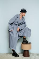 Женский длинный плащ свободного фасона, с широкими английскими лацканами и...