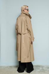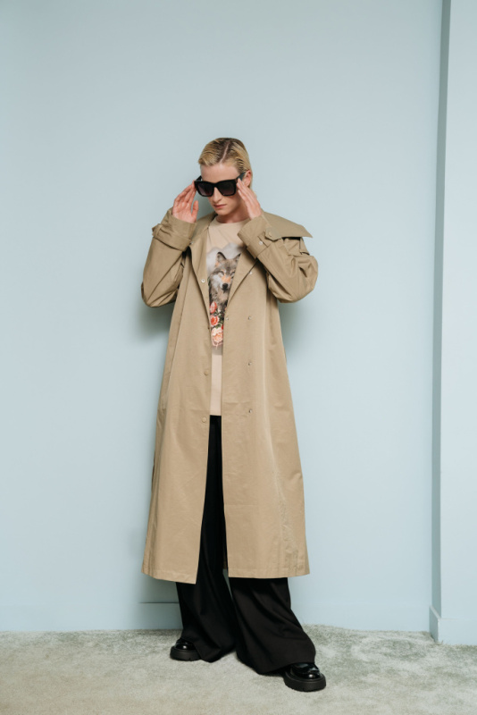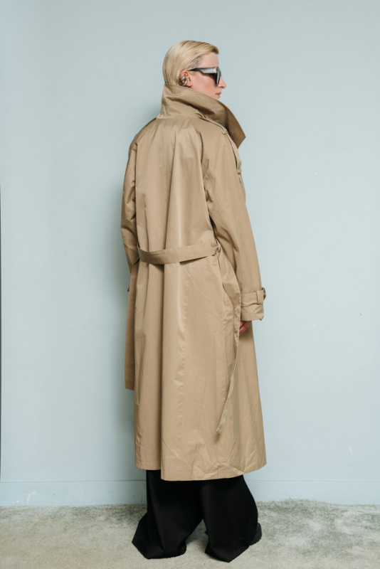 Плащ женский удлиненного прямого фасона, с поясом на талии, широким отложным воротником, погонами на плечах, патами на рукавах внизу. Застежка на кнопки. Демисезонная модель из однотонного хлопка, с подкладом внутри. Такой плащ станет элегантным дополнением ансамблей с платьями или брюками, а также добавит городского шика джинсовому сету.