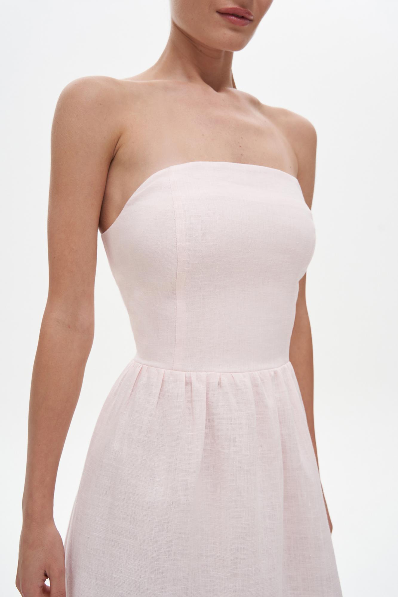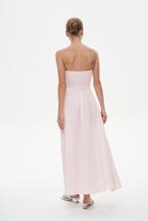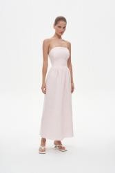 Платье без бретелей в длине макси. Модель выполнена с аккуратным корсетным топом, который аккуратно подчеркивает область ключицы. Для большего комфорта в носке дополнен резинкой по спинке. Юбка изделия широкая и дополнена коротким подкладом в тон, благодаря чему вы свободно себя ощущаете в платье. Платье красиво струится при ходьбе.