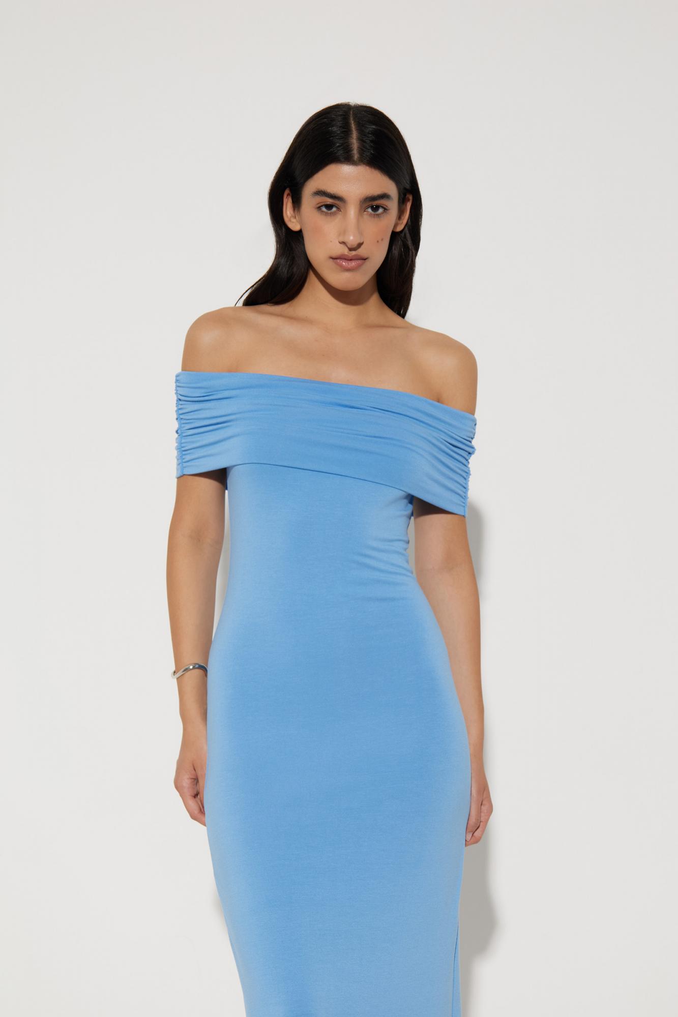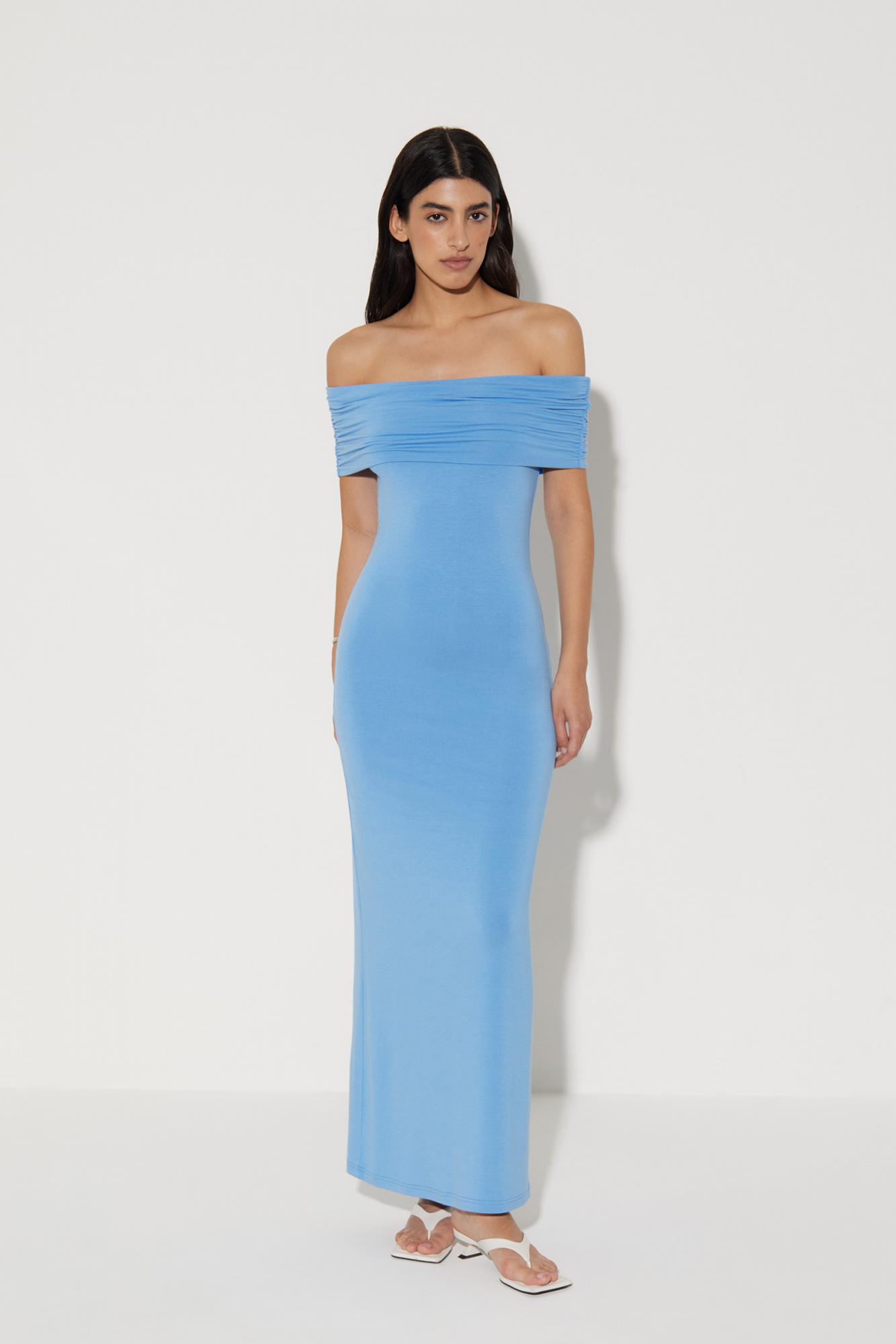 Платье макси со сборкой на плечах