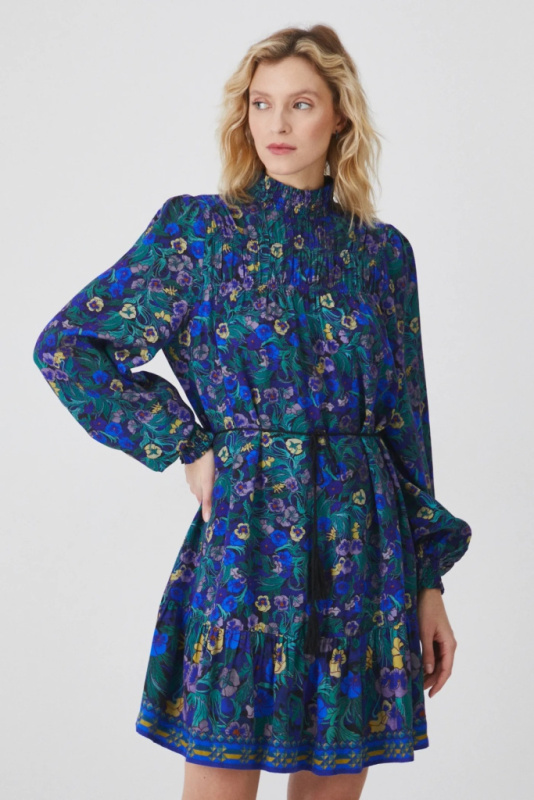 Платье из специальной коллекции Eviva L'arte. Расклешенная модель с тонким поясом из ткани с принтом.