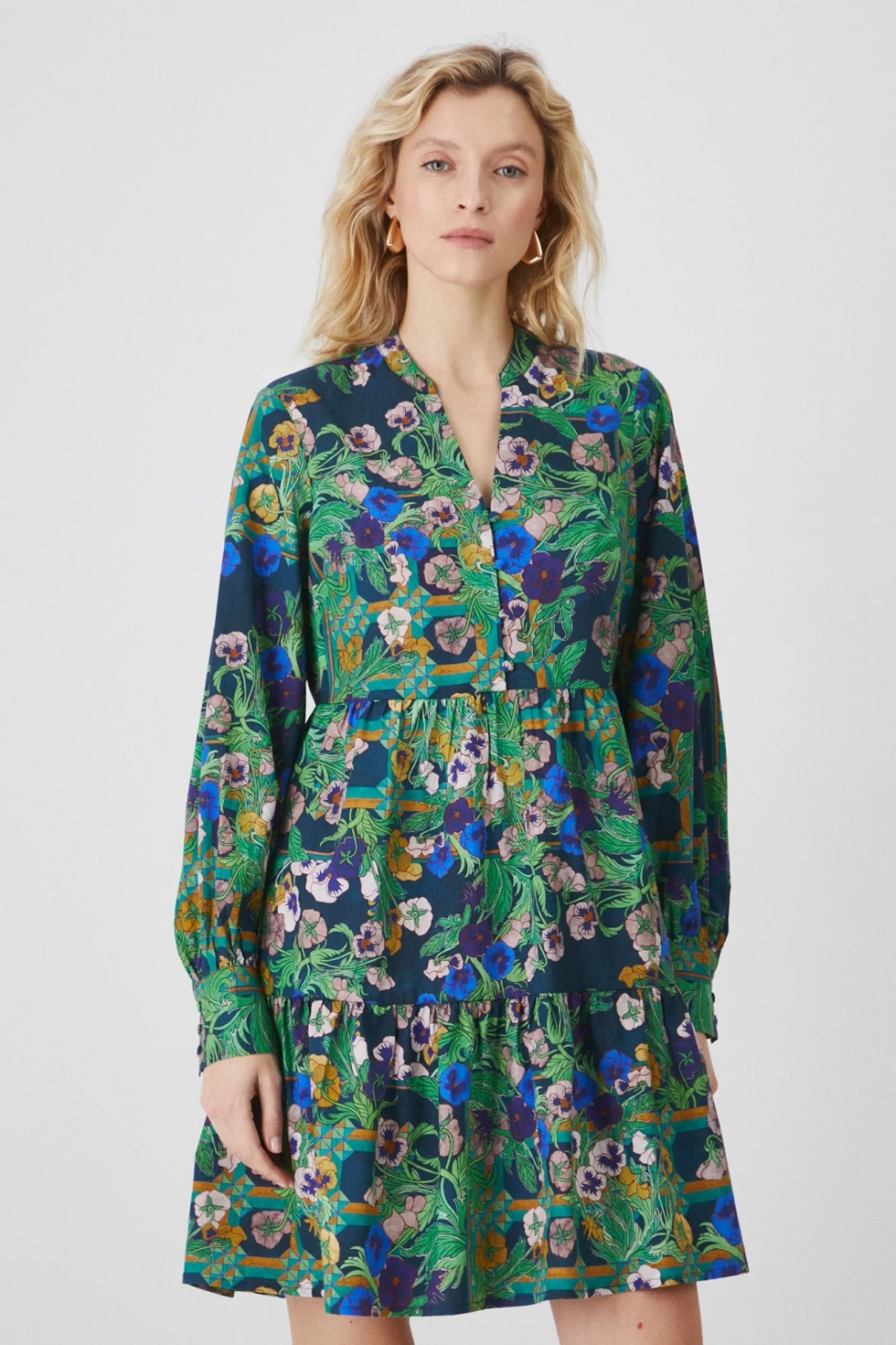 Платье из специальной коллекции Eviva L'arte. Свободного кроя, V-образный вырез горловины, цветочный принт.