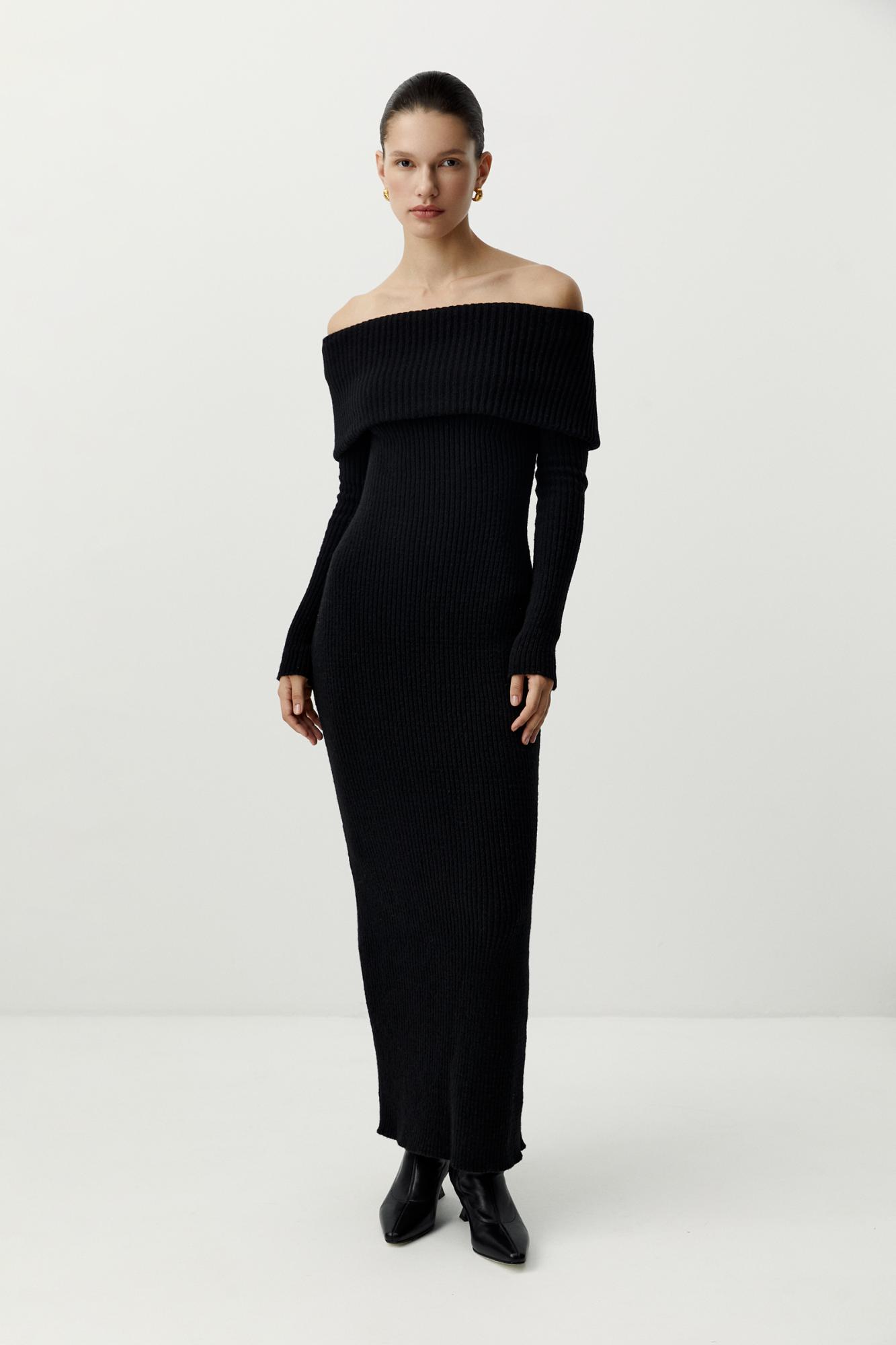 Платье вязаное с открытыми плечами (черный)