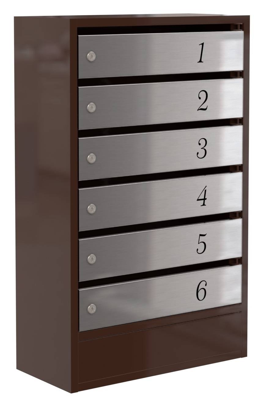 Элитный почтовый ящик Практик-6 пользуется заслуженной популярностью в новостройках. Его часто заказывают для установки в подъездах. Он имеет классический дизайн и симпатичные дверцы из шлифованной нержавейки. А ещё – это качественное изделие с отличными антивандальными показателями. Толщина металла – 0,8 мм. Нумерация наноситься методом лазерной гравировки – цифры можно заранее согласовать с производителем (шрифт на выбор заказчика). Сварная конструкция из углеродистой х/к стали. Почтальон «загружает» корреспонденцию через наружную щель, а владелец квартиры вынимает письма и журналы путем открытия нержавеющей дверцы. Надежный ключевой замок. Купить почтовый ящик можно в нашем интернет-магазине. Стоимость металлического бокса для почты – находится выше среднеценовой категории.