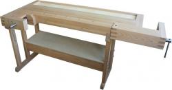 Столярные верстаки серии «Люкс» с усиленным подверстачьем позволяют разместить дополнительную полку. Для основы используются две стяжных горизонтальных доски (сечением 120×40 мм). Предложенные модели отлично зарекомендовали себя в школьных мастерских, гаражах, загородных домах, мебельных фабриках. Усиленное подверстачье представляет собой опорную раму с дополнительными элементами крепления. Стяжка каркаса - на металлических болтах.