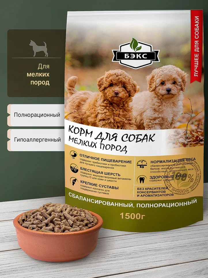 Полнорационный гранулированный корм для взрослых собак с натуральным составом. В отличие от большинства предложенных на рынке кормов, в нашем - нет ароматизаторов, красителей и усилителей вкуса, которые могут вызвать ухудшение состояния здоровья у животных. Состав нашего продукта подходит для собак всех пород и является гипоаллергенным.