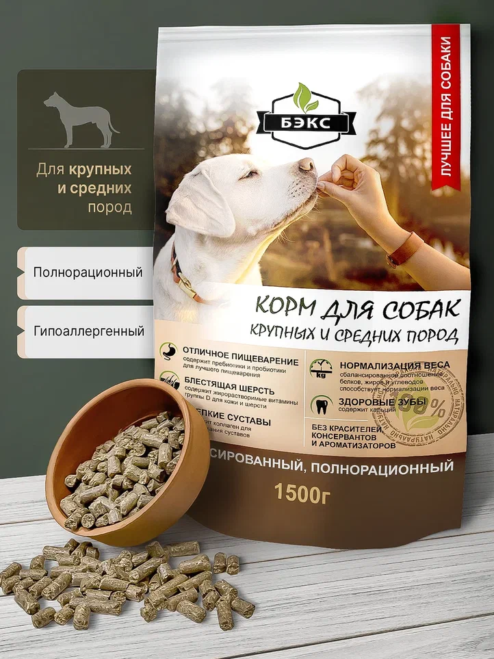 Полнорационный сухой корм для собак средних и крупных пород БЭКС 1,5 кг