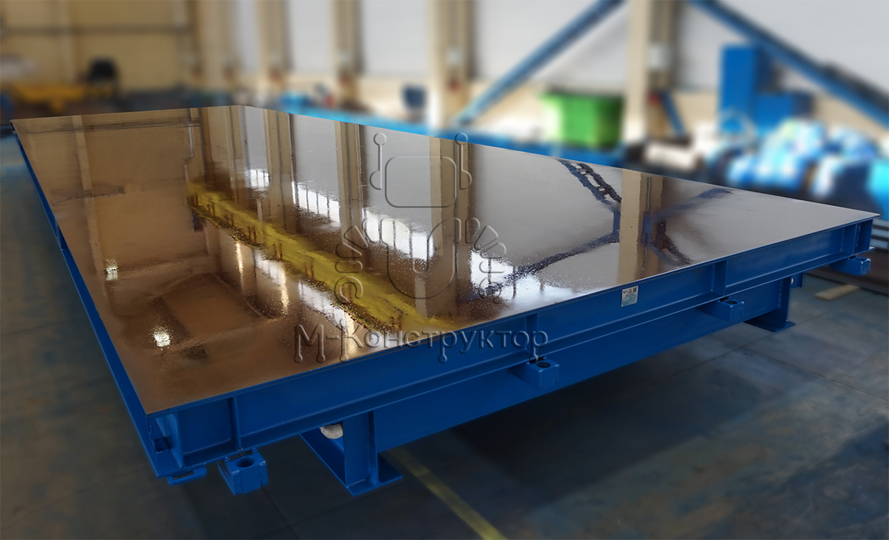 Допустимая нагрузка на стол – 1000 кг/кв. м. Поверхность стола выполнена из высокопрочной стали толщиной 10 мм, ширина поверхности может достигать 4 м, длина 12 м.