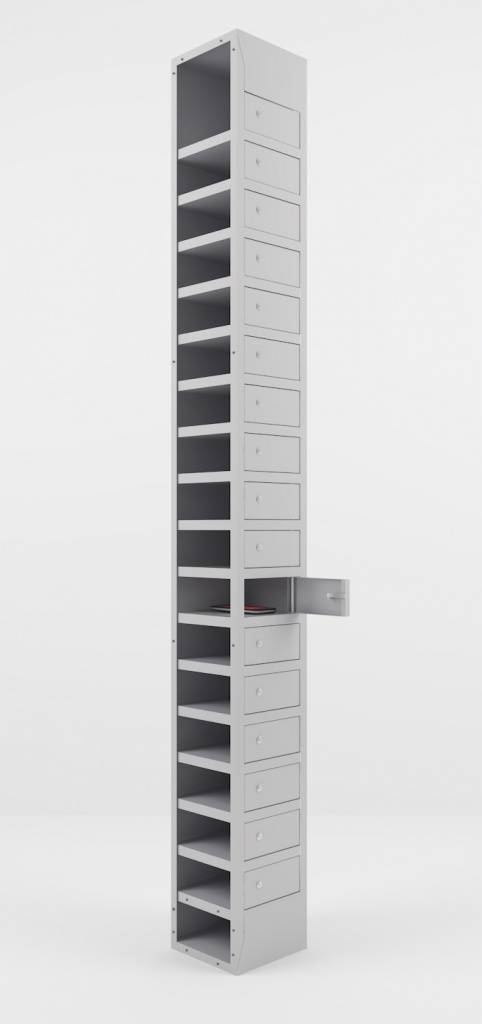 - Параметры ячеек, мм – 76х160х200 – эти габариты позволяют разместить в боксе до восьми смартфонов