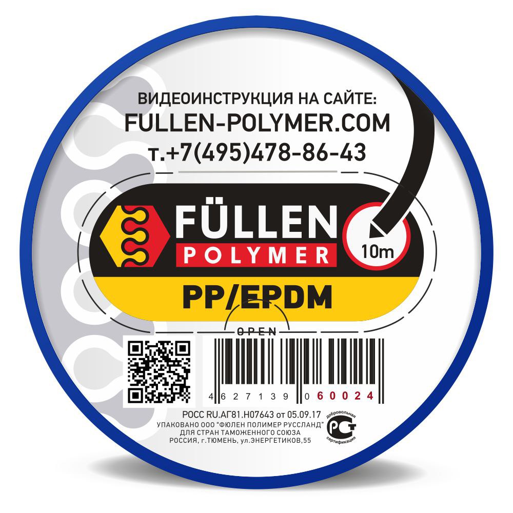 Продукт для ремонта пластиковых деталей из полипропилена (РР) и его производных. Пруток длинной 10 метров треугольного сечения черного цвета позволяющий скрыть следы ремонта на черных деталях. Такой материал отлично подойдет для ремонта деталей толщиной более 2,5 мм. Преимуществом упаковки в виде бухты является цельный длинный пруток, при работе с которым не остается неиспользованных отрезков, также при этом обеспечивается мобильность, компактность, удобство эксплуатации и хранения. Прочность сваривания этим материалом настолько высока, что не требует укладки поперечных нахлестов ни в каких других местах, кроме выхода из шва, что позволяет экономить присадочный пруток и рабочее время. В случае, если Вам необходим материал с идентичными характеристиками, но по более привлекательной цене с прутком ярко-синего цвета позволяющего работать в помещениях с ограниченной освещенностью – рекомендуем рассмотреть продукт fp60017. Материал в процессе ремонта имеет упругую деформацию и сваривается в диапазоне 280-330 С в зависимости от присадок наполняющих пластик. Достижение необходимой температуры для сваривания можно определить визуально, когда на ремонтируемой детали и присадочном прутке появляется блеск, похожий на слезу. В случае необходимости деформирования детали – достаточно ее разогреть до температуры 160 – 180 С, и придать нужную форму. Степень прочности ремонтного шва при сваривании оригинальными материалами Fullen Polymer при соблюдении технологии сварки около 70-80% от номинальной.