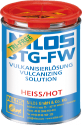 Раствор STG-FW для горячей вулканизации конвейерных лент от фирмы Nilos GmbH. Негорючий. Упаковка 1кг и 5кг.