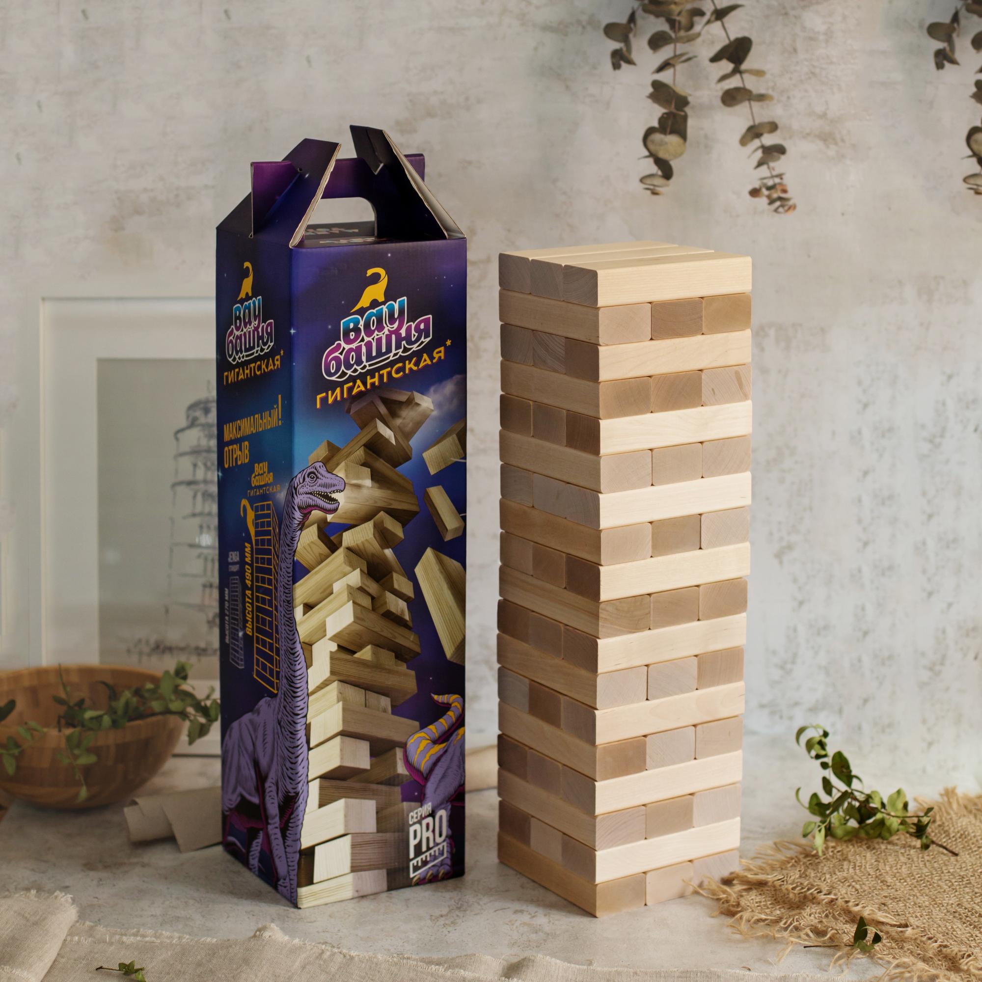 Деревянная игра огромная башня состоит из 54 брусков.