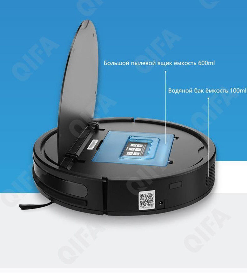 Робот-пылесос для сухой и влажной уборки дома. Компактный - всего 37 см в диаметре и 6 см в высоту. Мощность всасывания 1800 Ра. Время зарядки аккумулятора до 3 ч. Емкости аккумулятора хватит на 2 ч. непрерывной работы. Дистанционное управление. Можно установить график уборки. Предусмотрены режимы: автоматическая уборка, "вдоль стен", "локальный". Съемный резервуар для воды. Подходит для ковров с ворсом до 2 см. Встроенные датчики препятствий и определения ступенек. Автоматическое возвращение на базу.