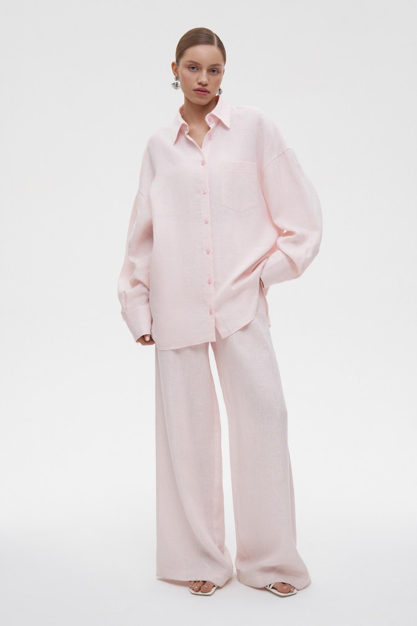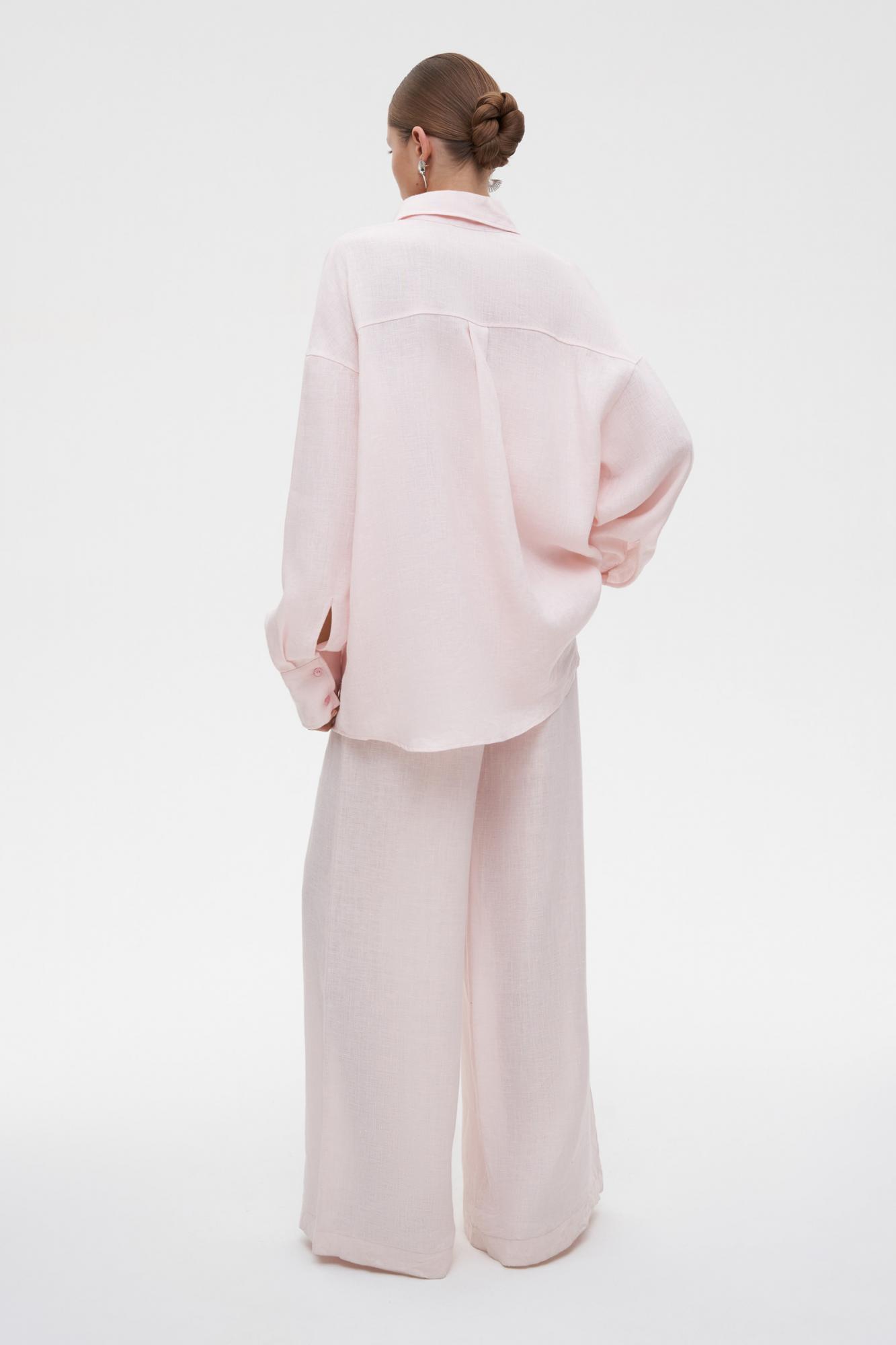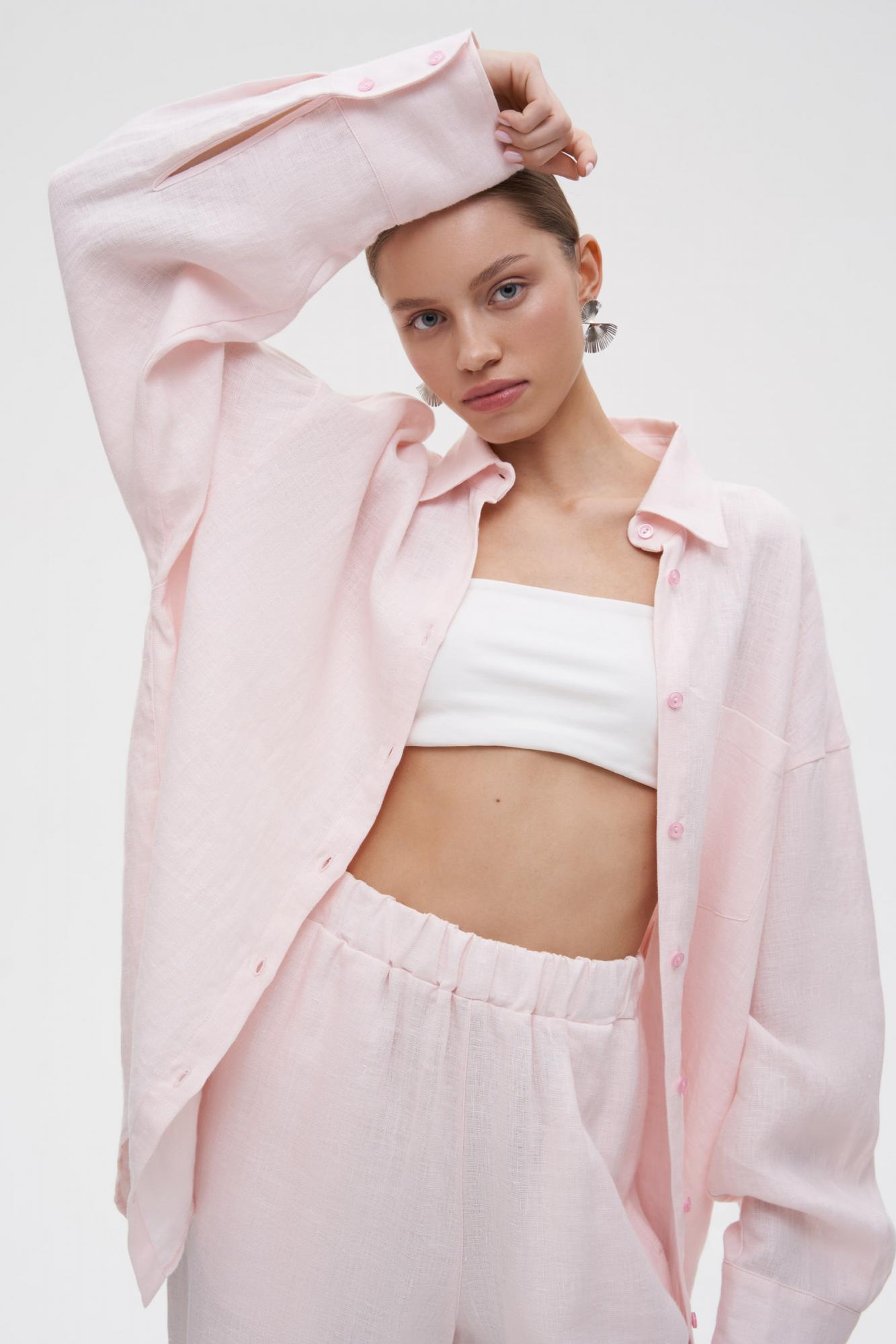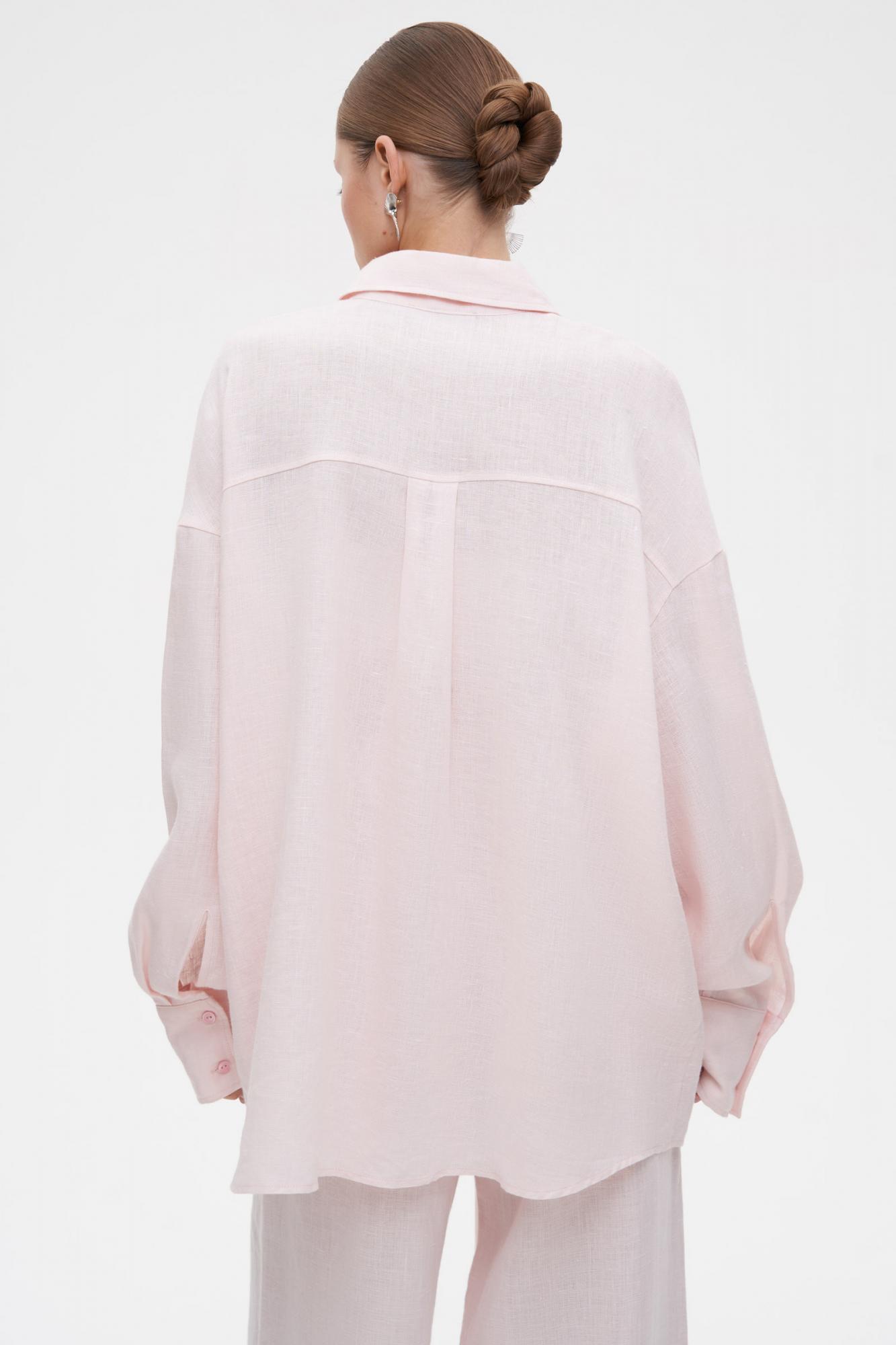 Легкая оверсайз рубашка комфортная и выразительная модель летнего сезона. Вы можете создать актуальный повседневный тотал-лук, выбрав брюки из аналогичной ткани в тон. Несмотря на оверсайз силуэт, рубашка очень нежно дополняет выходы с вечерними платьями и юбками. Также это уместный вариант для офисных встреч, если добавить классические прямые брюки или брюки палаццо.