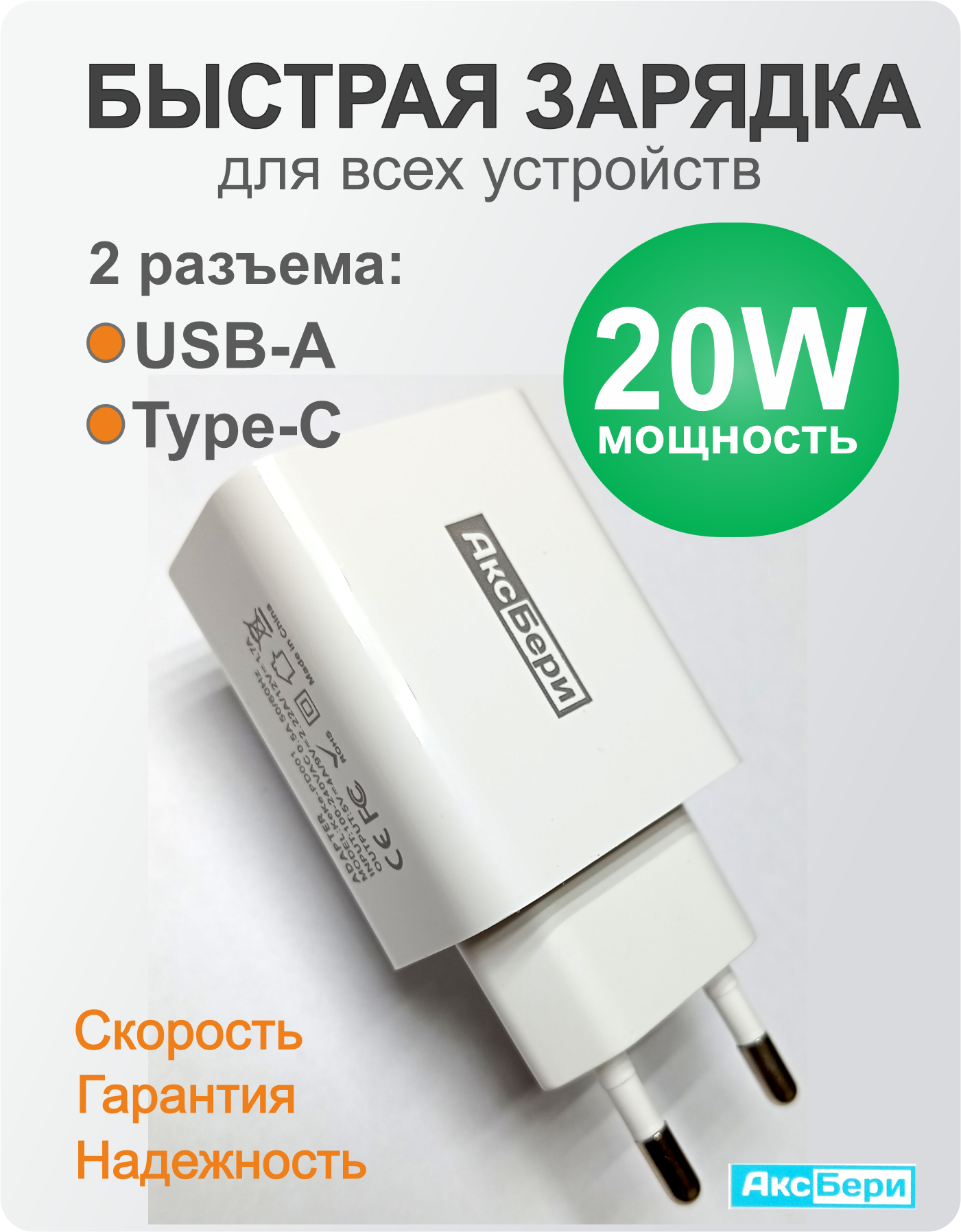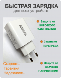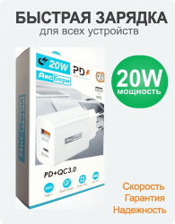 Универсальный блок Type-C USB мощностью 20W. Предназначен для зарядки как iPhone, так и Android-устройств. Возможно быстро зарядить гаджеты: планшеты, смарт-часы, колонки и т.д. Поддержка функции "Быстрая зарядка" (Power Delivery; Qualcomm Quick Charge 3.0). Блок оснащен 2-мя портами: USB и Type-C, поддерживает одновременную зарядку двух устройств. Разъем Type-C для быстрой зарядки с поддержкой Power Delivery 20W, разъем USB служит для быстрой зарядки по протоколу Quick Charge 3.0. Зарядный блок оснащен защитой от перегрева и короткого замыкания. Корпус изготовлен из высококачественных материалов- негорючего и не имеющего запаха ABS пластика. Данный блок соответствует техническим требованиям мирового производителя Apple. Выход: USB: DC 5V= 4A; 9V= 2,2A; 12V =1,7A; 20W. Общий: 20W MAX, Type-C+USB-A: DC5V=4A.A.