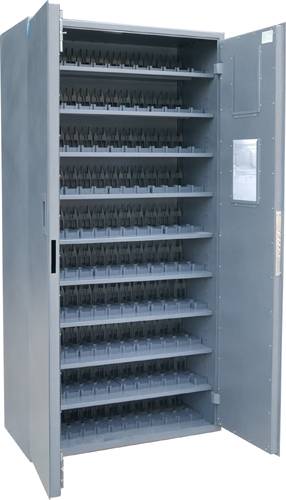 Модель ОШ-ПБ-1 – это самый вместительный пистолетный шкаф среди оружейных сейфов представленных интернет-магазином Sclad.Ru! Изделие вмещает 130 стволов, каждый из которых расположен в контейнере из ударопрочного пластика. Оружейный шкаф отвечает всем требованиям, предъявляемым МВД к хранению стволов и боеприпасов. Оснащен устройством для опечатывания. Сертифицирован на устойчивость к взлому по ГОСТ Р 50862-2005. С внутренней стороны двери предусмотрены металлические рамки под опись. Цена шкафа для хранения пистолетов доступная, т.к. интернет-магазин напрямую сотрудничает с производителями специализированной мебели из металла.