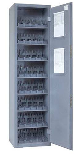 Модель ОШ-40ПУ используется в охранных фирмах, армейских оружейных, полиции. Сейф пистолетный предназначен для хранения 40 пистолетов типа ПМ, Кедр и т.д. Отвечает всем требованиям МВД к хранению огнестрельного оружия. Оборудован устройством для опечатывания. Изделие прошло сертификацию на взломостойкость в соответствии с ГОСТ Р 51113-97. Оружейный шкаф укомплектован пластиковыми ложементами под пистолеты. Изнутри дверцы предусмотрены рамки под список пользователей служебного оружия. Цена сейфа пистолетного доступная, т.к. интернет-магазин напрямую сотрудничает с производителями специализированной мебели.