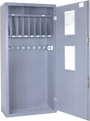 - Для защиты от коррозии, сколов и механических повреждений, поверхность оружейного шкафчика покрыта полимерно-порошковой краской, цвет – серый