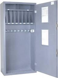 Модель ОШ-10 АКМ рассчитана хранение 10 автоматов Калашникова или карабинов того же производителя, есть отдельное отделение для подсумков и ниша для ремонтных принадлежностей. Предложенный оружейный шкаф отвечает всем требованиям к хранению боевого оружия. Оборудован устройством для опечатывания. Сертифицирован на устойчивость к взлому по ГОСТ Р 50862-2005. С внутренней стороны нижней дверцы предусмотрены металлические рамки под список. Цена сейфа автоматного доступная, т.к. наша торговая площадка напрямую сотрудничает с производителями специализированной мебели.