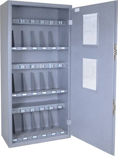 - Для защиты от коррозии, сколов и механических повреждений, поверхность оружейного шкафчика покрыта полимерно-порошковой краской, цвет – серый