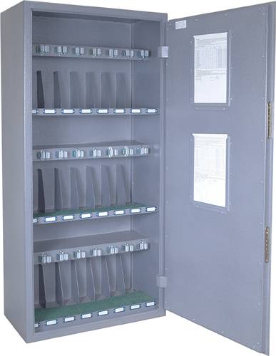 Модель ОШ-24 КЕДР подходит под хранение 24 пистолетов, типа ПП-91 «Кедр». Пистолеты устанавливаются фиксируются эргономичными роликовыми держателями. Во избежание механических повреждений приклады пистолетов-пулеметов опираются на ковролиновые прокладки. Это изделие отвечает всем требованиям, предъявляемым к хранению стволов и боеприпасов. Оснащен устройством для опечатывания. Сертифицирован на устойчивость к взлому по ГОСТ Р 50862-2005. С внутренней стороны двери предусмотрены металлические рамки под опись. Полки оснащены карманами под шильдики для подписей. Цена шкафа оружейного доступная, т.к. наша торговая площадка напрямую сотрудничает с производителями специализированной мебели.