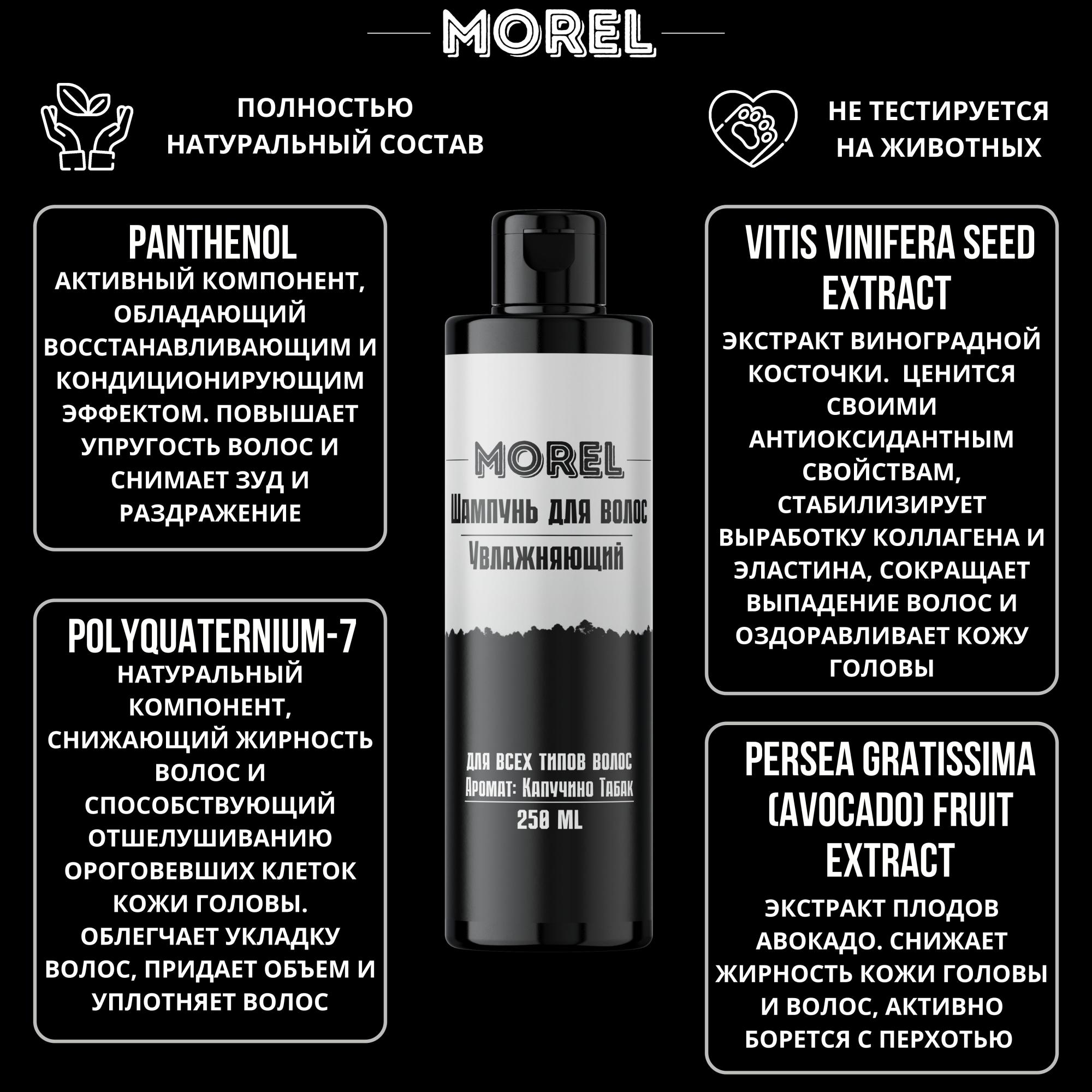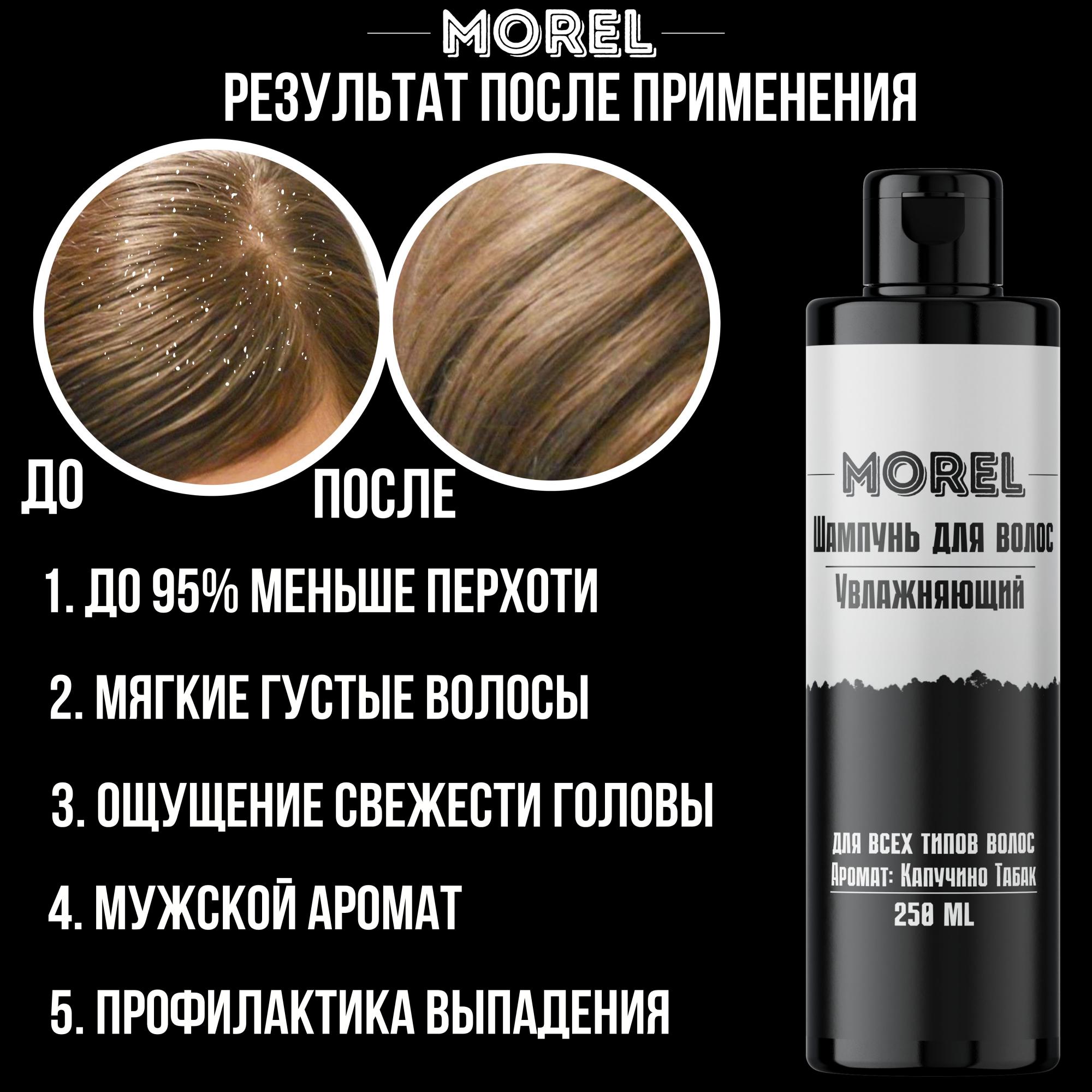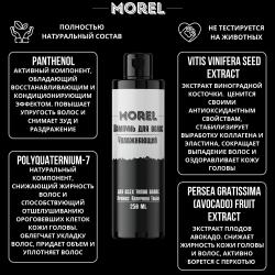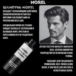 Шампунь для волос MOREL - профессиональная косметика для ухода за волосами. С его помощью вы избавитесь от излишней жирности волос, перхоти, сухости и других проблем кожи головы. Шампунь обладает увлажняющим действием, позволяя волосам оставаться мягкими и шелковистыми на протяжении всего дня. Специальная формула глубоко очищает волосы от загрязнений и излишков жира, при этом не пересушивая их и не раздражая кожу. Натуральный восстанавливающий шампунь для мужчин обладает универсальной формулой, которая прекрасно подойдет для всех типов волос и ежедневного использования, не пересушивая волосы и сохраняя их естественный блеск и красоту. Легкая текстура образует обильную пену, которая просто распределяется по волосам и коже головы. Уход за собой — то, что никогда не выходит из моды! Еще больше профессиональной косметики Вы найдете на странице магазина MOREL!