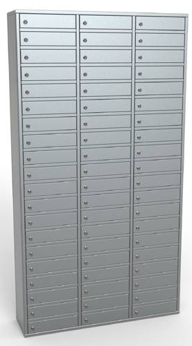 - Шкаф на 60 «глухих» ячеек под формат А5 без прорезей под корреспонденцию и сервисной двери;- Размер ячейки - 75х310х250 мм;- Каркас – профильная труба 20х20 мм;- Дверки и панели – 0,7 мм;- Замок – индивидуальный;