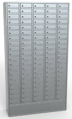 - Шкаф на 100 ячеек под формат А5 с сервисной дверью;- Размер ячейки - 60x170x305 мм;- Каркас – профильная труба 20х20 мм;- Дверки и панели – 0,7 мм;- Замок – индивидуальный;