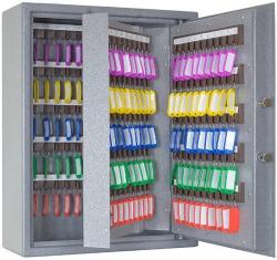 Ключница КЛЭ-200 предназначена для хранения 200 комплектов ключей. На задней стенке корпуса расположены отверстия для крепления. Ключница комплектуется 20 планками под навеску ключей. Корпус ключницы толщиной 2 мм, дверь толщиной 2 мм. В двери установлен замок электронный сейфовый который соответствует ГОСТ Р 51053-97, п.п. 5.1-5.4, 5.7 и классу А.
