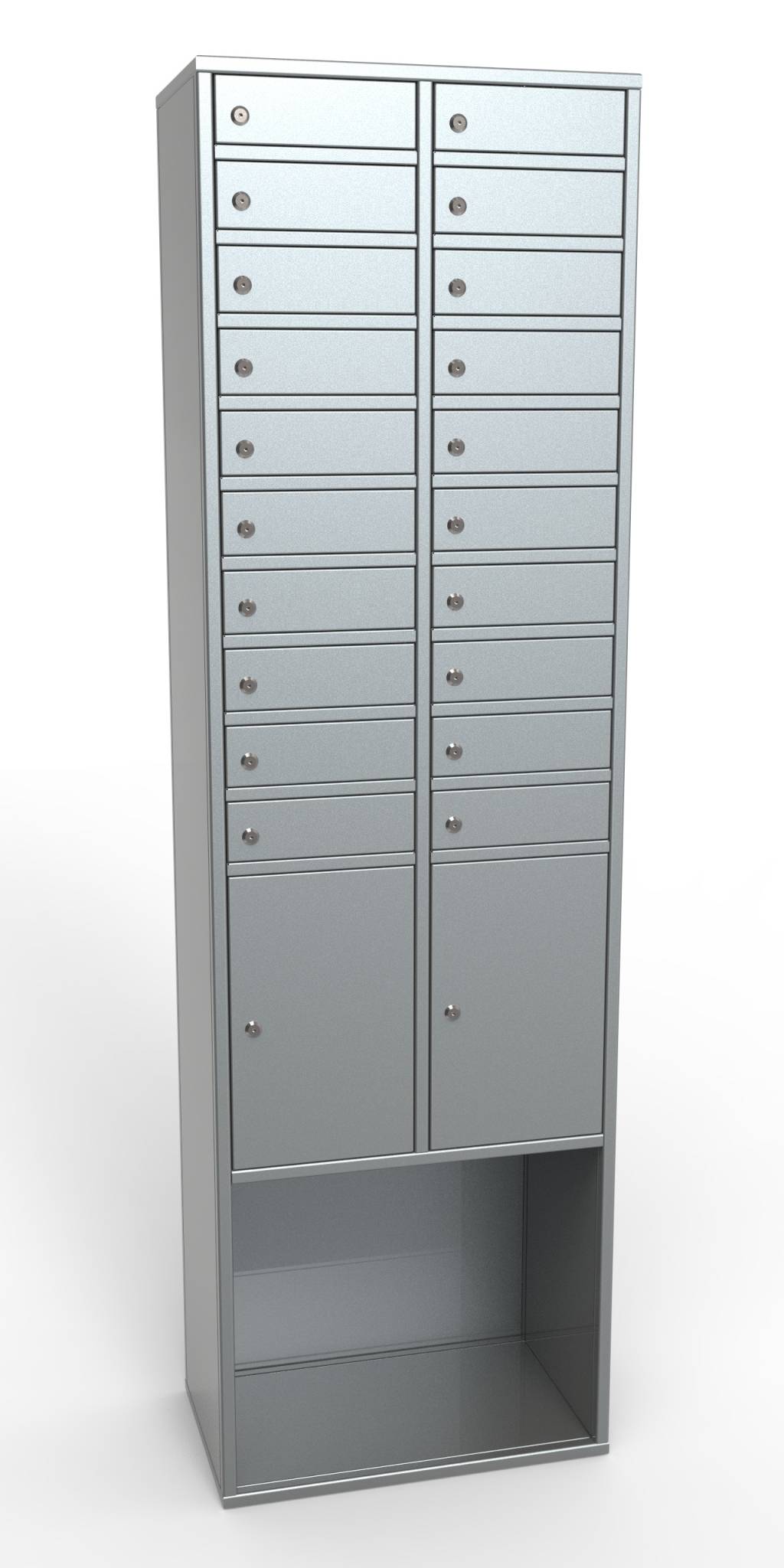 Модель ШМТ-20 – это многоячеистая камера хранения для телефонов и документов. Интернет-магазин представляет оптимальный вариант металлической мебели для проходной большого офиса, конструкторского бюро, предприятия военно-промышленного комплекса, супермаркетов и т.д. Корпус изготовлен из высококачественной листовой стали толщиной 0,7 мм. Конструктивно изделие состоит из 20-ти малых индивидуальных боксов для сотовых, двух больших ячеек (под формат А4) и ниши для габаритных вещей. Каждая створка закрывается на индивидуальный ключевой замок. Цена шкафа для хранения мобилок всегда оптимальная для региона продаж, т.к. наша торговая площадка напрямую работает с производителями специализированной мебели.