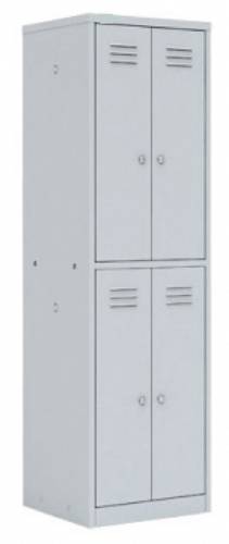 Металлический гардеробный шкаф ШРМ-24 – это компактная конструкция, характерной особенностью которой являются четыре обособленных ячейки (расположение 2х2). Каждая из них достаточно вместительная и эргономичная, для удобства хранения вещей предусмотрены полки, крючки, перекладины. В каждую из четырех дверцей врезан индивидуальный почтовый замок. В каталоге нашего интернет-магазинапредставлено большое количество специализированной мебели для производственных и вспомогательных помещений. Российский шкаф гардеробный цена - доступная, качество - высокое.