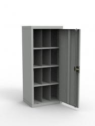 Представленная модель – это удобный и практичный образец металлической мебели для армейской казармы, склада, оружейный комнаты. Купить шкаф для противогазов на 12 ячеек можно в нашем интернет-магазине. Изделие рассчитано на хранение дюжины средств индивидуальной защиты. Шкаф закрытый для хранения СИЗ сварной конструкции, с дверью и замком. Изделие имеет небольшой вес (40 кг), что позволяет легко перемещать его по территории объекта. Предусмотрены отверстия для анкерного крепежа. Цена шкафа противогазного – оптимальная для региона продаж. Мы имеем возможность предлагать металлическую мебель по низкой стоимости, т.к. наша торговая площадка работает напрямую с производителями. Обратите внимание! Конструкция поставляется заказчикам в собранном состоянии, упакованной в гофрокартон и стянутой упаковочной лентой.