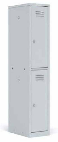 Металлический гардеробный шкаф для одежды ШРМ-12 представляет собой односекционную модель с двумя отделениями, каждое из которых оснащено индивидуальным почтовым замком. В каждой секции есть перекладина для вешалки. Это компактная производственная мебель для раздевалок спортклубов и заводских бытовок. Если вы ищите, где купить шкафчик металлический для одежды недорого – модель ШРМ-12 отлично подходит под этот запрос. Где заказать бокс для раздевалки? Интернет-магазин располагает большим количеством специализированной мебели для производственных и вспомогательных помещений. Цена шкафа для спецодежды – бюджетная, т.к. наша торговая площадка напрямую работает с производителями.