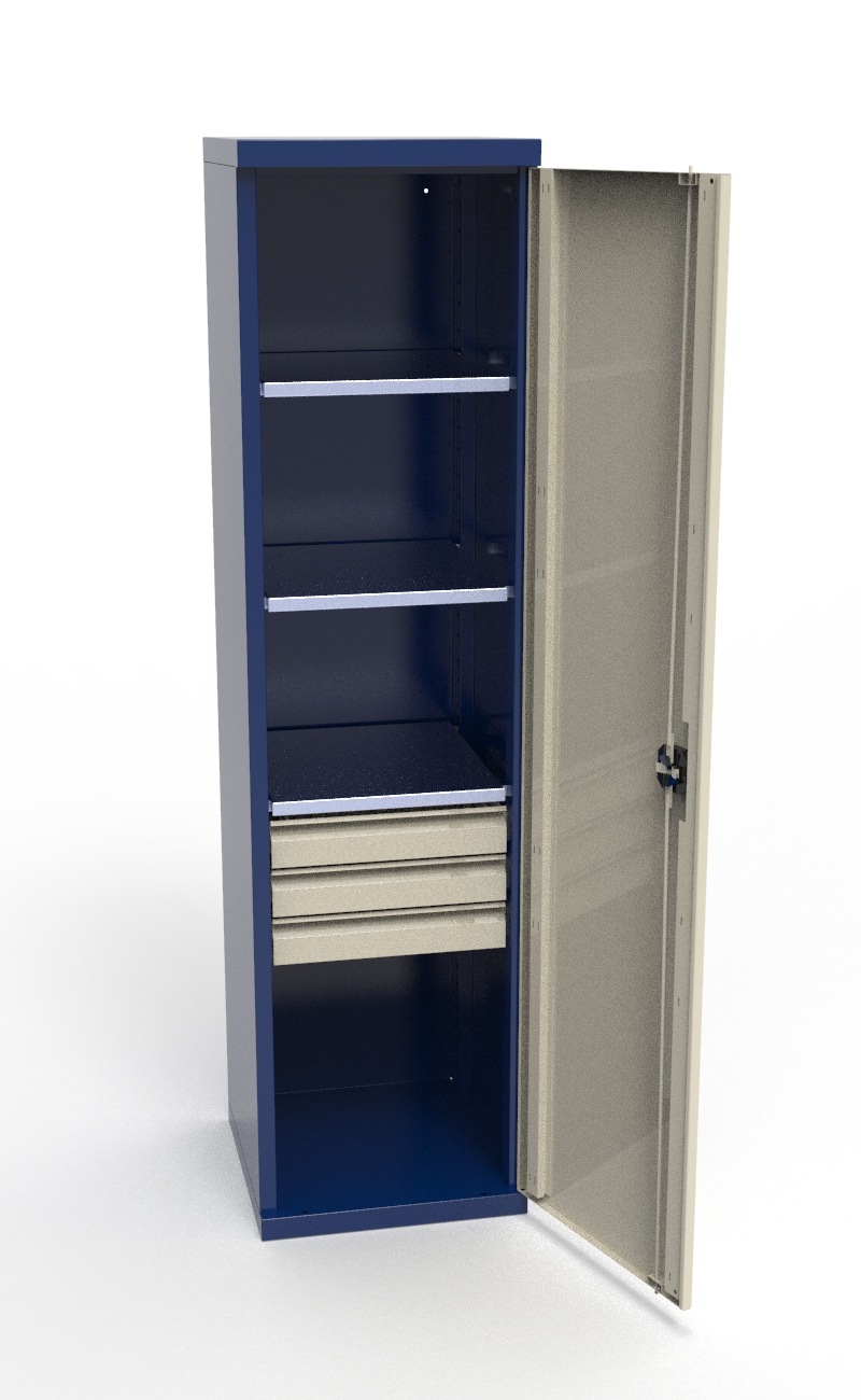 Особенности шкафа пенала инструментального для токарной мастерской СШИ-05.03.03 с тремя полками и тремя ящиками от ООО Регион-Снабжение