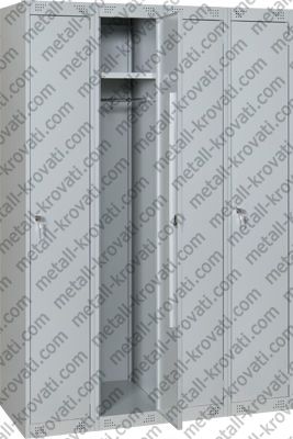 Тип: шкаф металлический из четырех отделений, с 4 дверьми, с полками, крючками и перекладинами в каждом отделении
