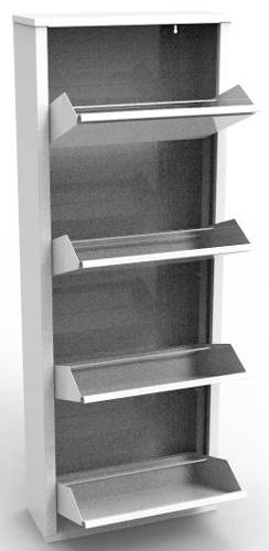 Компактный вариант с откидными полками для хранения обуви – белый шкафчик обувница на четыре секции ОБ-4 отлично зарекомендовала себя в небольших прихожих. Отлично подходит для хранения взрослой и детской обуви. Купить обувницу металлическую предлагает наш интернет-магазин. Наша торговая площадка работает напрямую с производителем, поэтому цена шкафа обувного – всегда доступная.