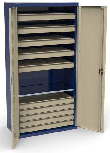 Материал: корпус, двери и выдвижные ящики изготавливаются из листовой х/к стали толщиной 0.9 мм,полки изготавливаются из оцинкованной стали толщиной 2 мм