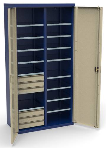 Максимально возможное количество комплектующих для шкафа серии СШИ-01: полки - 20 шт, ящики - 20 шт., для шкафа серии СШИ-02: полки - 40 шт, ящики - 40 шт.