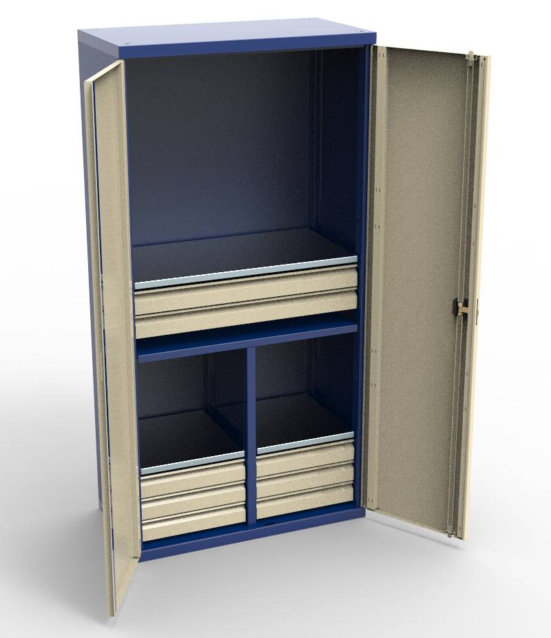Корпус шкафа и выдвижные ящики изготавливаются из х/к стали толщиной1мм, полки из оцинкованной стали толщиной2мм.