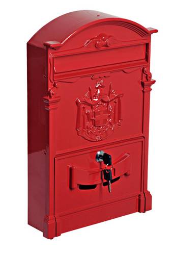 Интернет-магазин представляет модель красного цвета ВН-12 – это стильный уличный почтовый ящик ярко-красного цвета. Бокс для корреспонденции визуально похож на секретер викторианской эпохи, стилизованный гербом и виньетками. Купить навесной почтовый ящик высокого качества не составит труда, если заказчик ознакомится с каталогом интернет-магазина . Большой выбор расцветок. Цена ящика для почты ВН-12 красного цвета – абсолютно бюджетная.