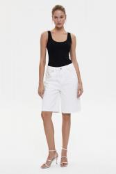 Широкие джинсовые шорты прямого кроя. Акцентная высокая посадка подчеркивает линию талии. Силуэт обеспечивает комфортное и свободное прилегание на бедрах. Мы выполнили модель в универсальной длине, чтобы легко стилизовать под любые поводы. Имеются шлевки для ремня.