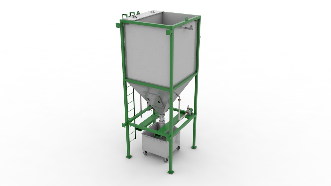 Конструкция данной модели водоочистки заключается в трёх разделенных секциях. Вода принудительно подается из верхней части на дно водоочистки, где осаждается большая часть загрязнений. Устройство водоочистки сужается ко дну и оборудовано клапаном для автоматического сброса загрязнений.