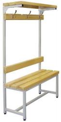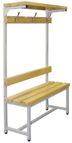 Модель CК-1В-Ш-2000 – отличное решение для обустройства бытовых помещений и раздевалок. Оборудована дополнительным элементом - полкой для головных уборов. Каркас из качественного прямоугольного профиля из металла. Сиденье скамьи - три массивных сосновых бруса толщиной 30 мм. Деревянные элементы стабилизированы, пропитаны антисептиком и покрыты качественным водостойким лаком – это позволяет эксплуатировать данную мебель в местах с повышенной влажностью (бассейнах, душевых, саунах, банях). Составные части конструкции скрепляются с помощью винтов и шпилек. Купить скамейку для бытовок CК-1В-Ш-2000 с вешалкой и полкой для головных уборов можно в нашем интернет-магазине.