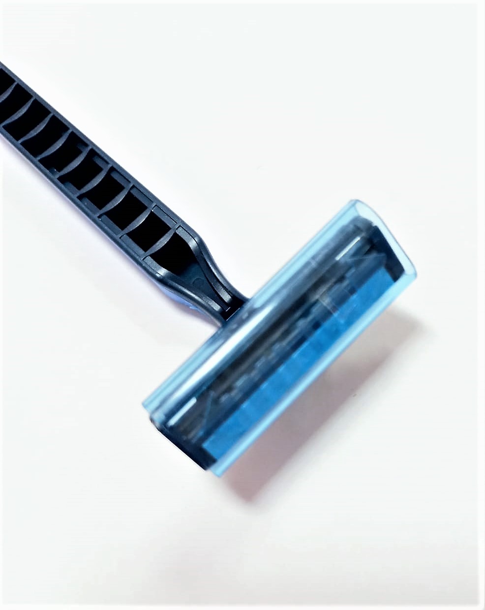 Бритва с двойным лезвием и фиксированной головкой, резиновая сетка по бокам для удобства держать в руке. Её активируемая водой смазывающая полоска обеспечивает мягкое скольжение бритвы.