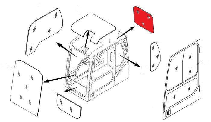 Стекло кабины заднее (триплекс) 71N6-02750 Hyundai R140-R500 серия 7 и 7A