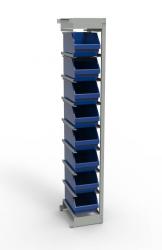 Конструкцией стеллажа предусмотрена фиксация контейнера в наклонном положении.